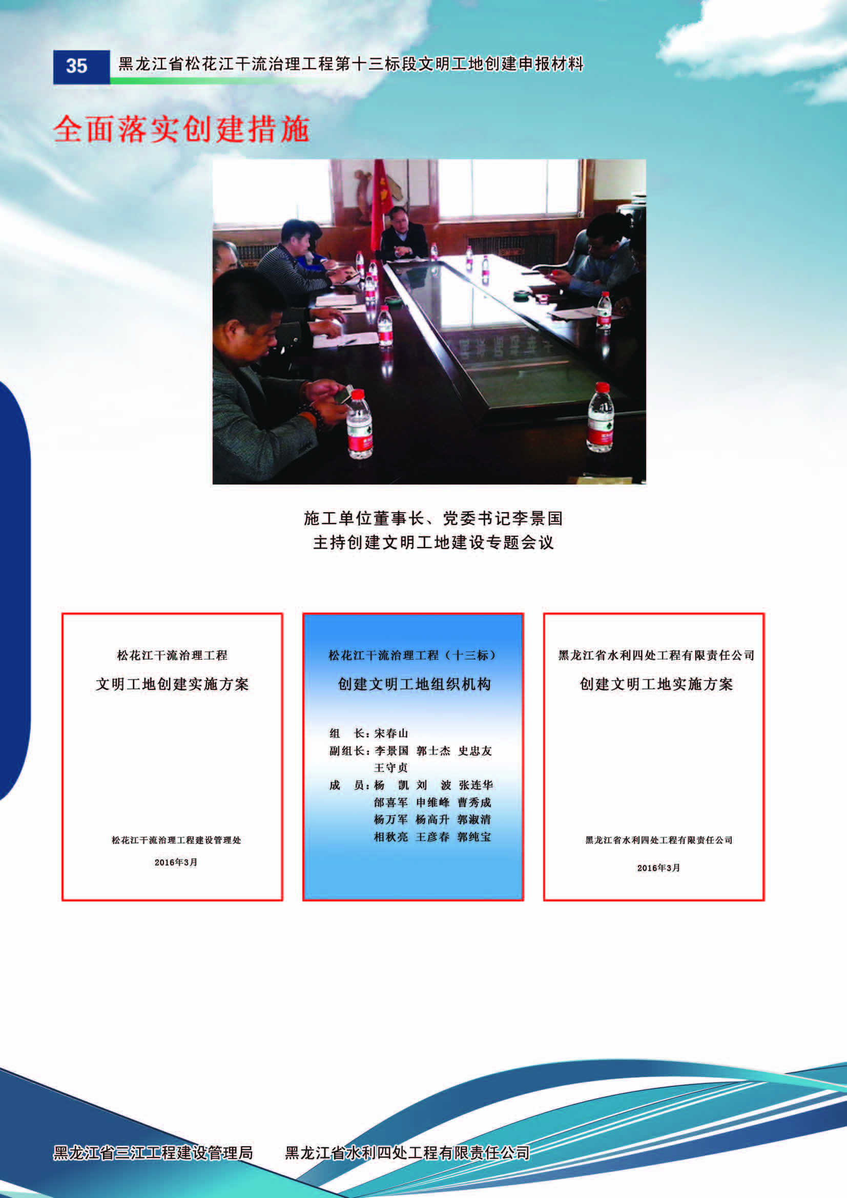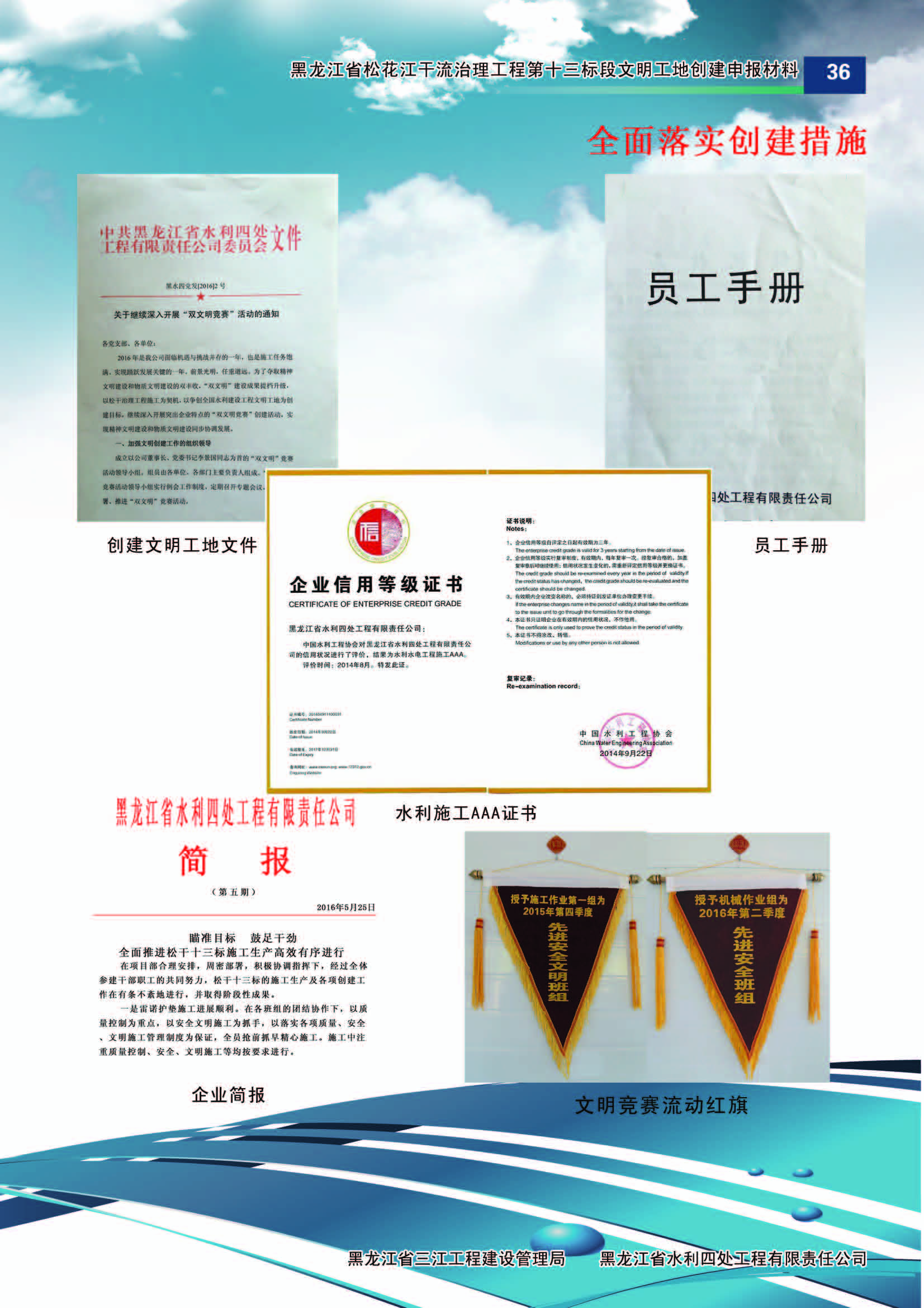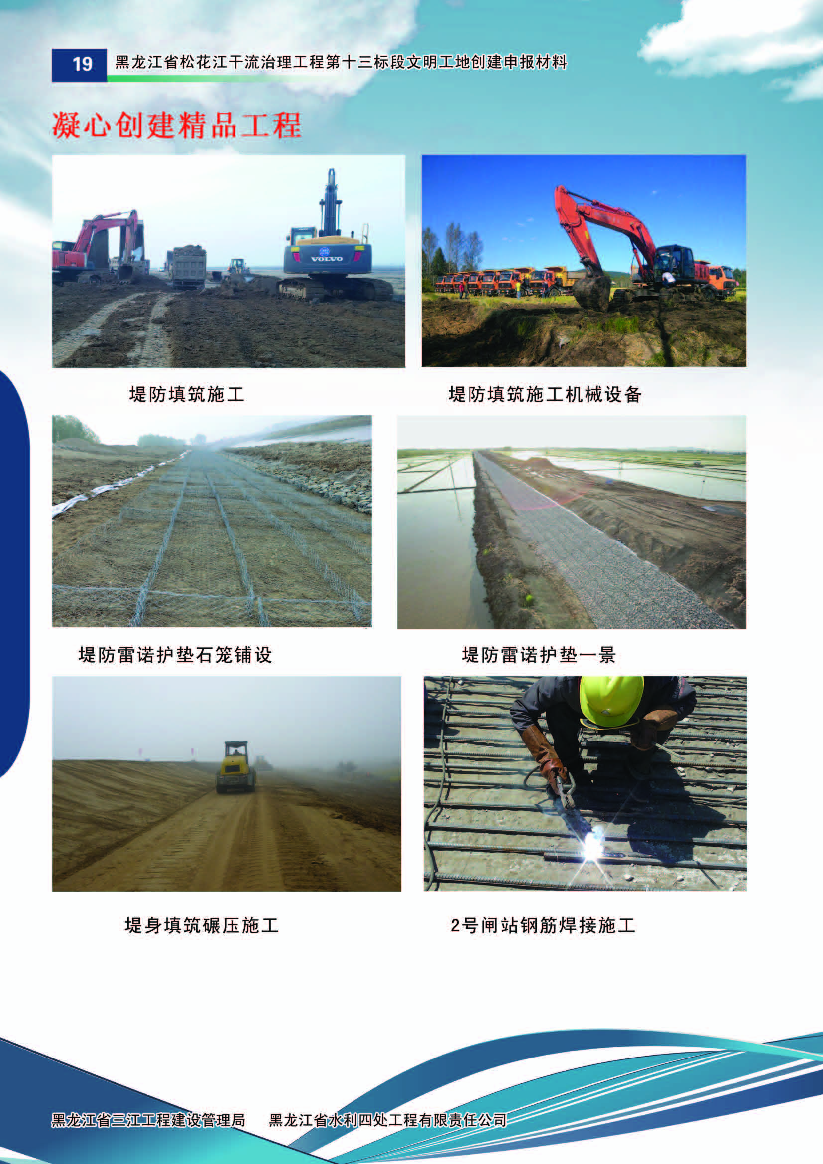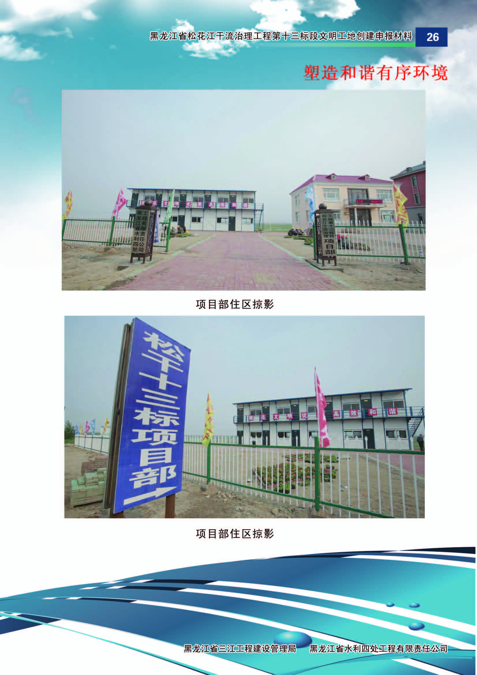施工中黑龍江省水利四處嚴(yán)格按照水利部《水利建設(shè)工程文明工地創(chuàng)建管理辦法》的要求,積極組織開展文明工地創(chuàng)建活動(dòng)。