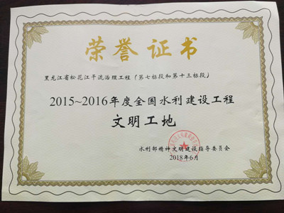 全國水利建設文明工地證書