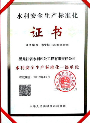 水利部安全生產(chǎn)標(biāo)準(zhǔn)化一級(jí)單位證書(shū)