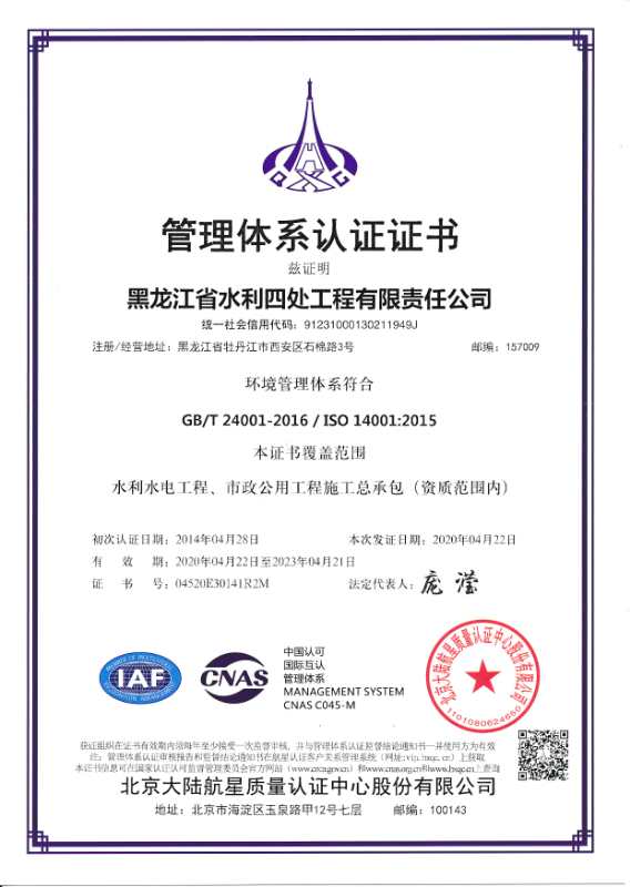 環(huán)境管理體系證書