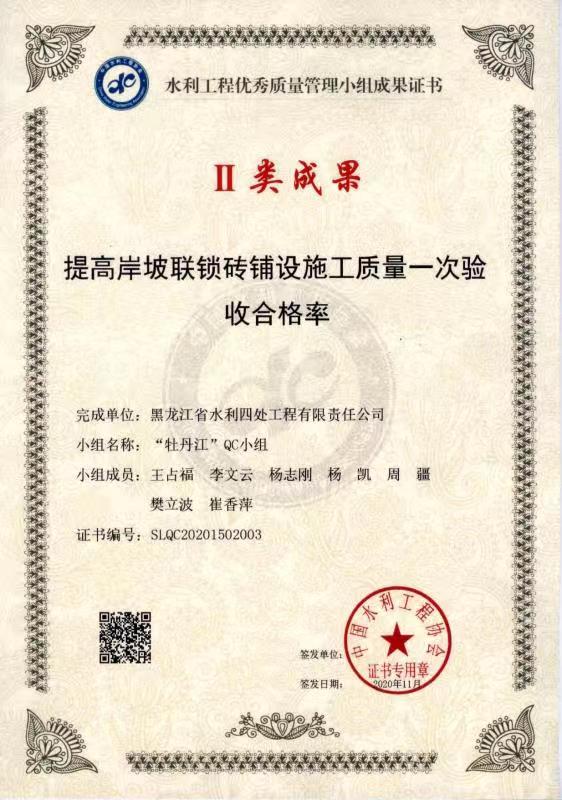 水利工程優(yōu)秀質(zhì)量管理QC小組Ⅱ類成果
