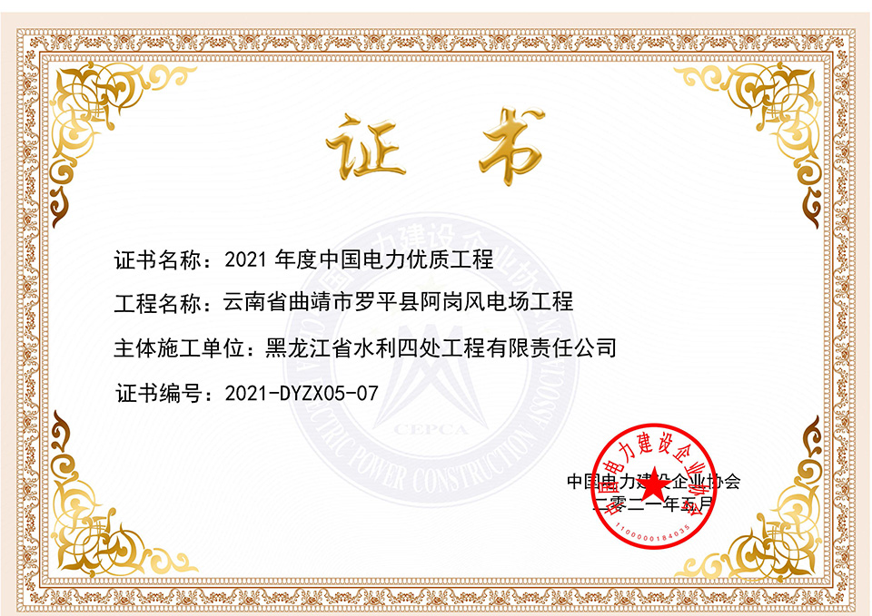 公司榮獲2021年度中國電力優(yōu)質工程獎