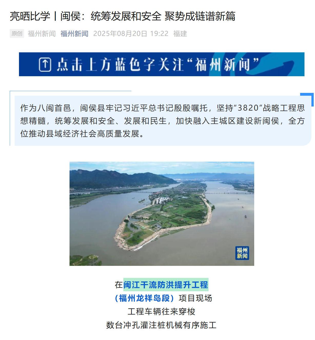 新聞報(bào)道我公司承建的閩江干流防洪提升工程