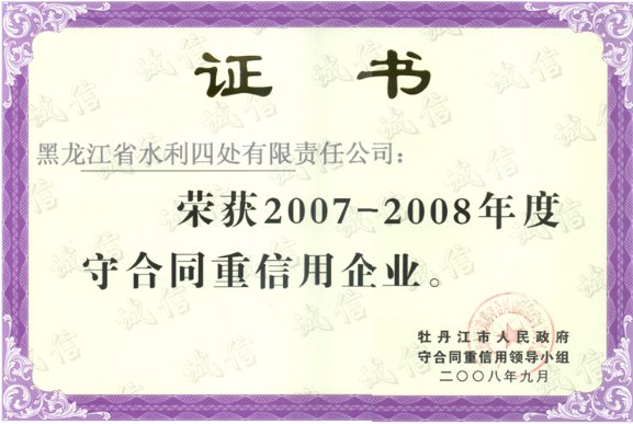 上一篇:2007-2008省級(jí)守合同重信用企業(yè)證書(shū)