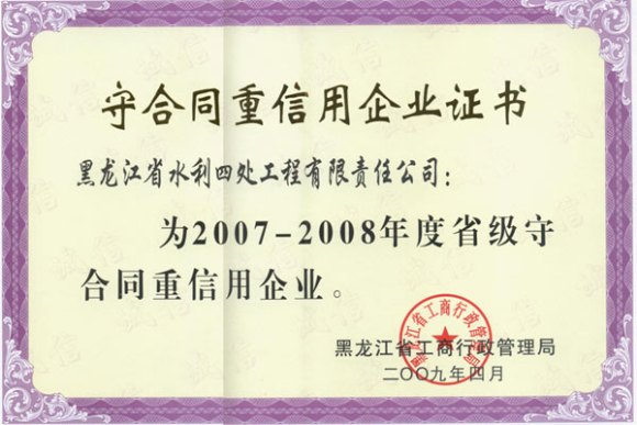 2007-2008省級(jí)守合同重信用企業(yè)證書(shū)