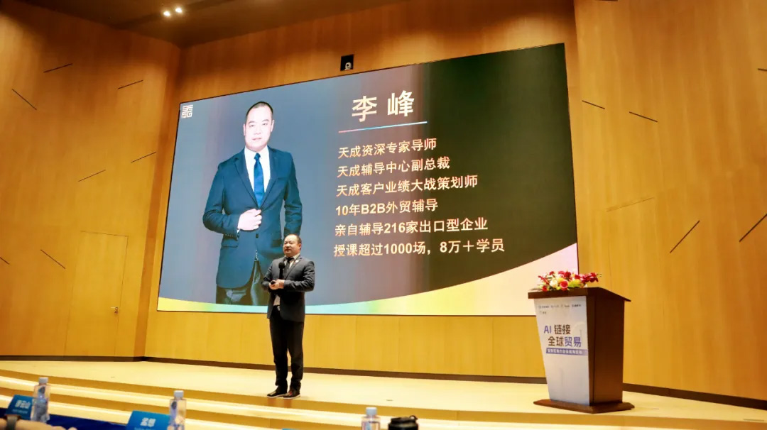本次活動的最后一場分享會是由天成資深專家導(dǎo)師李峰帶來的《2025年外貿(mào)業(yè)績倍增規(guī)劃》,在全球貿(mào)易環(huán)境經(jīng)歷持續(xù)變革和挑戰(zhàn)的浪潮中,如何實現(xiàn)外貿(mào)業(yè)績的倍增,
