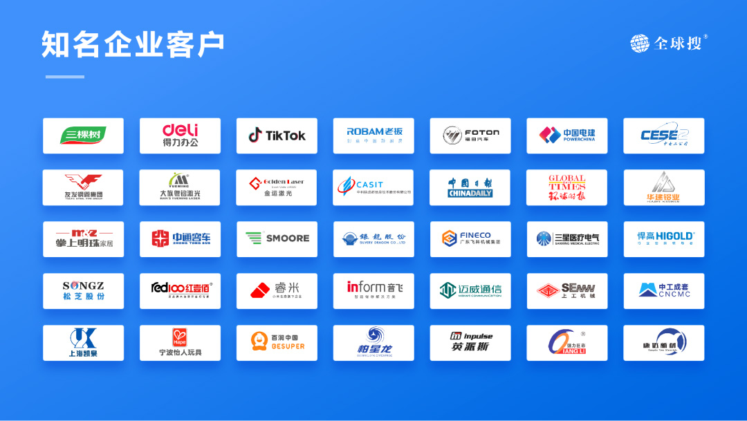 創(chuàng)貿(mào)集團(tuán)旗下產(chǎn)品全球搜專注為中國出海企業(yè)提供:以SaaS平臺架構(gòu)為基礎(chǔ)進(jìn)行外貿(mào)建站、以谷歌搜索引擎為核心進(jìn)行優(yōu)化推廣的——基于獨(dú)立站+AI 一站式出海解決方案。