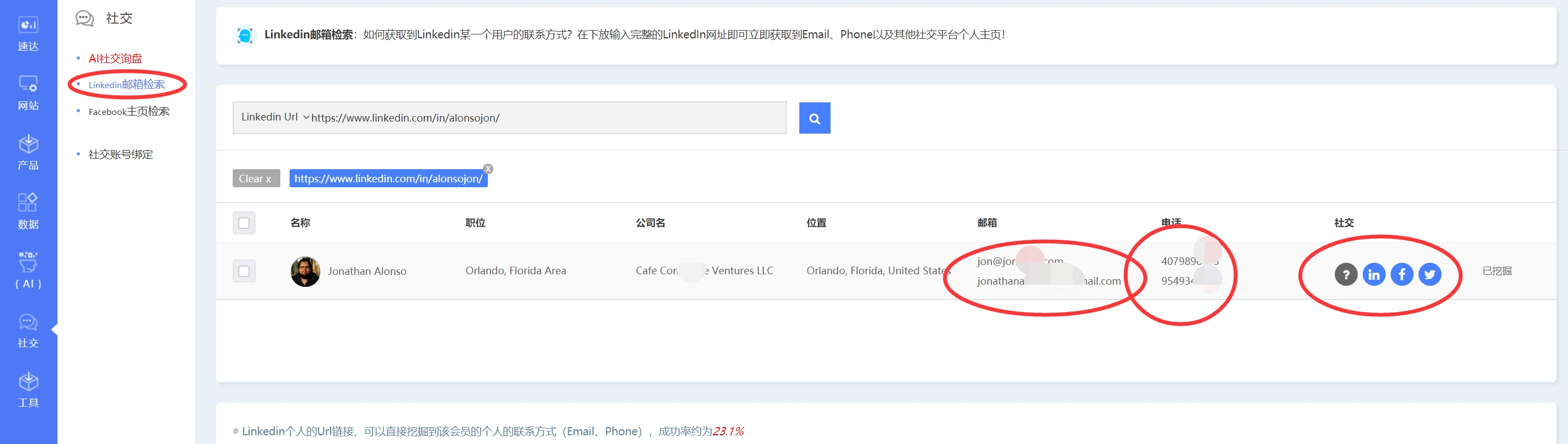 而全球搜的數(shù)據(jù)大師,對(duì)這個(gè)尷尬的難題就有很好的解決方式。LinkedIn 郵箱檢索功能,通過(guò)聯(lián)系人URL,快速檢索出聯(lián)系方式以及社交信息,刻畫(huà)客戶(hù)的完整畫(huà)像,是了解客戶(hù),跟進(jìn)客戶(hù)的絕佳方式。