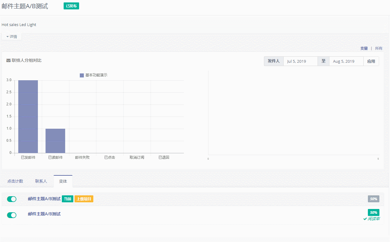 并且數(shù)據(jù)大師,還將自動(dòng)將你的郵件發(fā)送結(jié)果做出分析對(duì)比,自動(dòng)分出勝者,作為下次郵件營銷的參考。