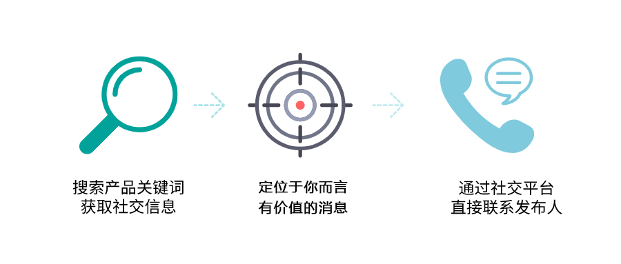 AI社交詢盤功能,整合了Facebook、YouTube、LinkedIn上的社交信息,使用該功能的用戶,只需要輸入自己企業(yè)的產(chǎn)品關(guān)鍵詞,就可以得到社交平臺(tái)上的產(chǎn)品采購資訊內(nèi)容,可以直接利用社交平臺(tái)與采購商發(fā)起會(huì)話,讓你的主動(dòng)開發(fā)更即時(shí)!